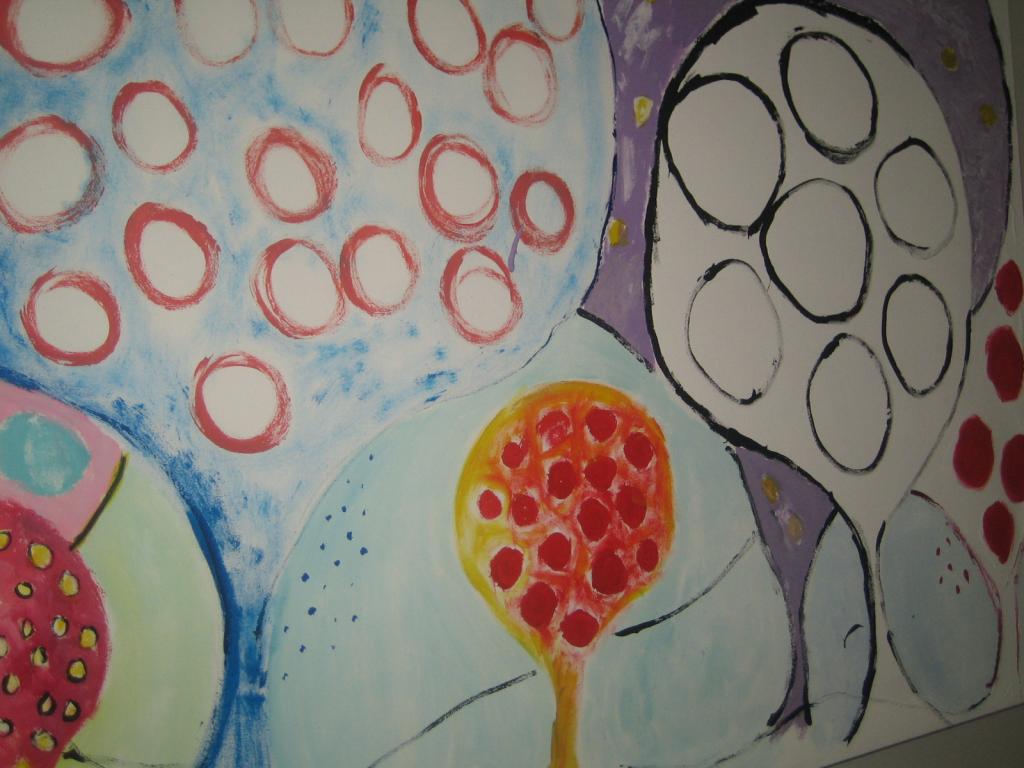 Pari vuotta vanha, maalaamani taulu. Taululla on kokoa noin metri kertaa puolitoista. Tykkään taulusta, paitsi että kangas tuli pingotettua liian kireälle ja taulun raamit kiertää. Onpas ainakin itsetehdyn näköinen. 😛 Nyt on maalaamiset jääny vähemmälle. Minä kun hurahdan yhteen asiaan kerralla, nyt taitaa olla menossa ompeleminen 😉